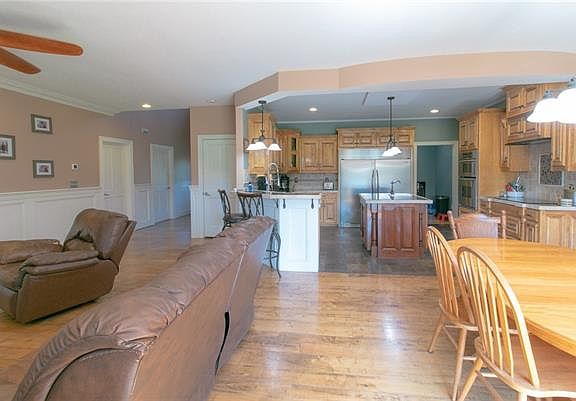 You will love this gorgeous home on 5 acres with lake access! Walk to the 8 acre lake and enjoy fishing and kayaking. Owner has added so many custom features, too many to list- this is a must see home for the price. Custom wood floors, amazing custom tiled walk in shower, updated primary bathroom, new roof, gutters, siding, upgraded trim, heat pump (home is all electric for low utility bills) and 85 gallon hot water heater. Primary bedroom has washer and dryer hook ups on main level plus hook ups on second level as well, so convenient. Beautiful views! Easy access to the highway, perfect for the commuter. Walk out basement could be finished for additional square footage and is plumbed for bathroom. Newer landscaping.