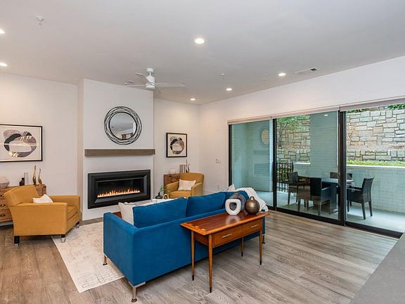 Cozy fireplaceSpa-inspired finishesSoaring ceilingsLuxurious primary suiteLight-filled open floor planTranquil terraced gardenSleek automatic blinds