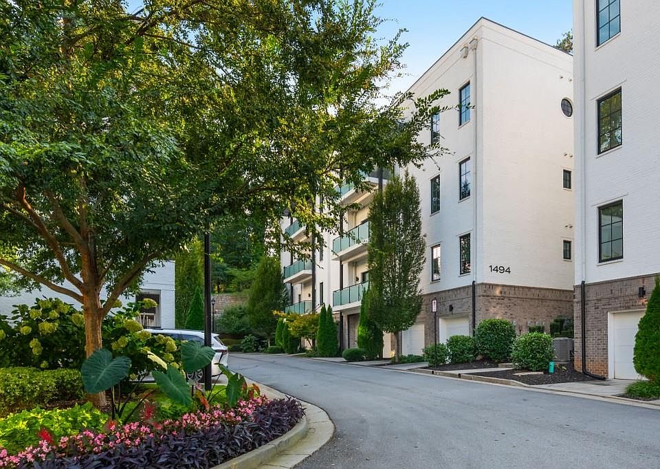 Welcome to The Sophia - Your Perfect Retreat in Historic Druid Hills. Nestled in the heart of Druid Hills, this beautifully appointed end-unit condo offers the best of modern living in one of Atlanta's most iconic neighborhoods near Emory University and the CDC. Located in a convenient gated community and built in 2018, this home combines contemporary comfort with timeless elegance. Step inside to find soaring ceilings, a light-filled open floor plan, and a chef's dream kitchen with high end appliances, waterfall edge quartz countertops and much more - perfect for everyday living or hosting unforgettable gatherings. The spacious living area centers around a cozy fireplace, while sliding glass doors open wide to a private covered patio overlooking a tranquil terraced garden - ideal for morning coffee or relaxing evenings. The luxurious primary suite is a true retreat, complete with spa-inspired finishes and ample space to unwind including a large frameless glass shower and a separate soaking tub. With plenty of room to entertain or enjoy quiet moments, this home effortlessly adapts to your lifestyle. Additional features include a large two-car tandem garage, generous additional storage, and the ultimate convenience: the elevator opens directly to your front door. You'll also love the sleek, automatic blinds that invite natural light at the touch of a button. Whether you're looking for your forever home or a stylish in-town retreat, 1494 Red Fox offers comfort, convenience, and a community you'll love. Come see why this special home is the one you've been waiting for!