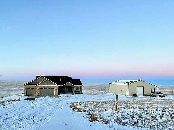 Spacious views at this 5-bedroom home in Rocking Star Ranch. The prairie behind the home is protected by common space and BLM ground. There are three bedrooms and two bathrooms upstairs and two bedrooms with one bathroom downstairs. Three gas fireplaces. Main floor laundry. Large living room in the walkout basement. 3 car attached garage with a large shop adjacent to the house. For showing call 307-220-1715