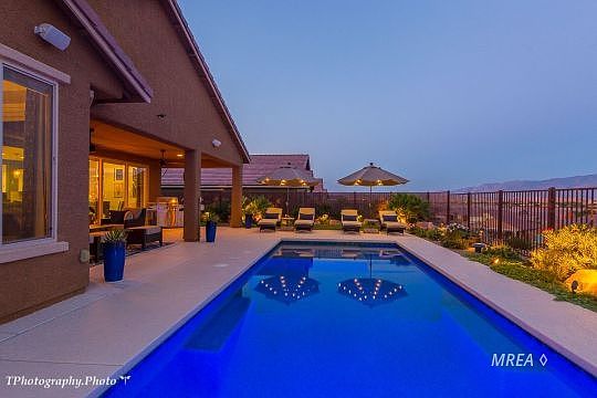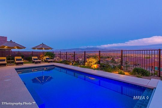 Simply Stunning! This Sun City Hideaway model is truly ONE OF A KIND with a uniquely custom flair and well over $250,000 in interior and exterior upgrades. Situated at the end of a Cul-de-sac with no neighbor to the south, this desert retreat is perched high above Sun City on a highly sought after $125,000 premium home site. The setting is exceptional with panoramic southeast mountain and city views. Natural desert scape surrounds the home and Flat Top Mesa is right out the front door. The yard is incredibly private and the landscaping is meticulous. This home is an entertainer's dream. Cool off in the swimming pool with colorful LED lights and enjoy music from the $10,000 outdoor sound system. The $10,000 multi-panel sliding glass door opens up to the spacious covered patio. The kitchen has gorgeous Quartz counters, custom soft close cabinets, stainless appliances and decorative backsplash. The wet bar has a sink and wine refrigerator, accent lighting and custom beveled glass. The extended tile is beautiful and the coastal paint tones are inviting. The bathrooms are exquisite. The 6' garage extension is a must have and is ideal for storage. Designer furniture package available.