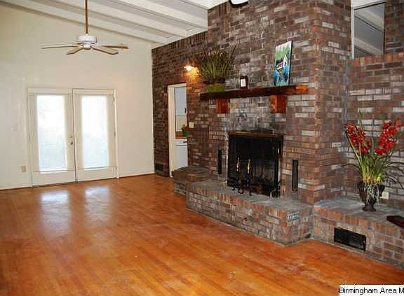 Run, don't walk to this great investor buy in Homewood. Unheard of space for this price, enjoy 3 Bedrooms, Living Room, Kitchen & large eat in space all with hardwoods. Two full baths include tub/shower combo with tile enclosure and tile floors. The unique design, featuring a sunken Living Room with high pitched ceilings is accented by an oversized brick fireplace & hearth. Step into the Kitchen where the ceiling height mirrors the Living Room and a unique indoor brick barbeque grill is a special surprise. (no knowledge of working condition of fireplace or grill) An exterior carport houses one car & also provides an enclosed laundry room. Go through the breezeway to enjoy a vast level backyard fenced and private from other homes in the area. The front lawn is also level and there are just a few steps to the entry of the house. Appliances, Updates, Lipstick & Rouge are needed on this one Some updates are new: new roof, windows & newer HVAC.