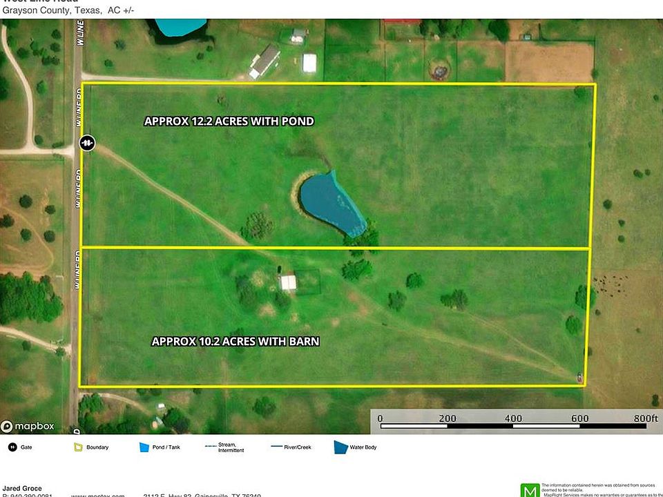 Land for sale near Whitesboro, TX in Grayson County. The north tract is approximately 12.2 acres (to be surveyed) with a beautiful pond. No climb fencing on 3 sides. Water line and electric at the PAVED county road frontage. This 12 acre property located just a few minutes south of Whitesboro, TX 76273. NO pipelines, NO transmission lines, NO gas or oil wells - just beautiful, pristine land that is waiting for you to build your custom home on. Very reasonable deed restrictions include: 1200 sf or larger new home or new double wide permitted. No fighting chickens. No Junkyards. No commercial feed lots.