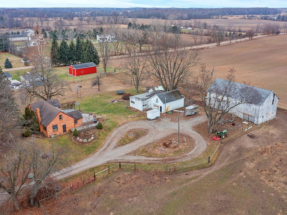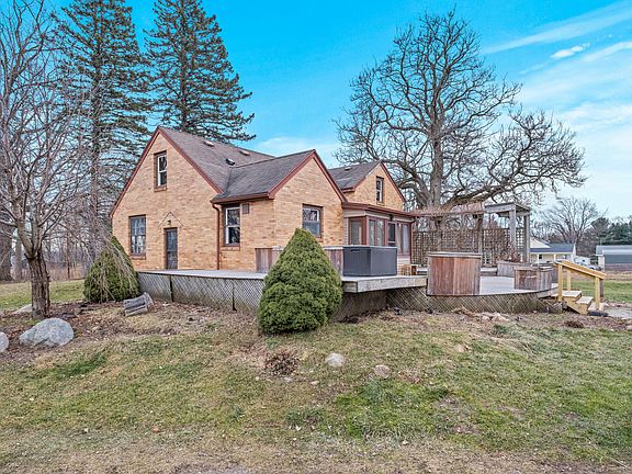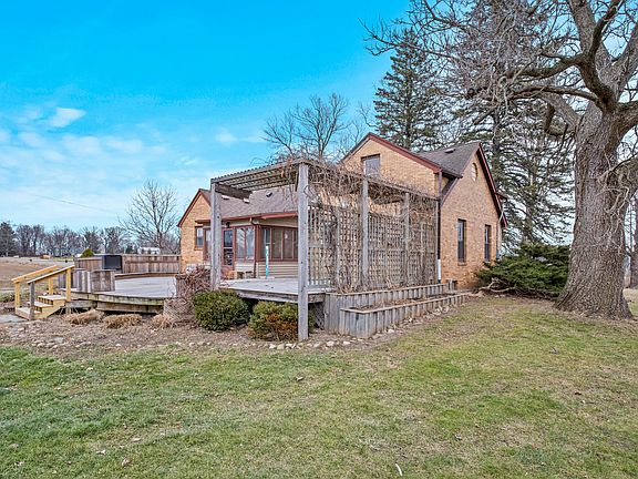 This chock full of character brick bungalow style farm house with an awesome floor plan is just waiting for you to call home! Gorgeous hardwood floors, an impressive wood burning fireplace in the dining/living combo room, a charming country kitchen with ceramic tiled floors and unique tin style ceiling plus all the major kitchen appliances make this home a great place to enjoy the country lifestyle. There are two bedrooms on the main level with a full bath. The second level features an ample landing area that could be used as an office or sitting area, maybe even a fourth bedroom that leads you to a primary ensuite with its own jetted tub and massive bedroom. The partially finished basement offers loads of storage and a multi use area to take advantage of any way you see fit. Take in the scenery from the 1100 square foot deck that leads you to the multiple garden sites, fire pit and the outbuildings that feature a 2 car detached garage plus barn complete with horse stalls and fenced in pasture.
