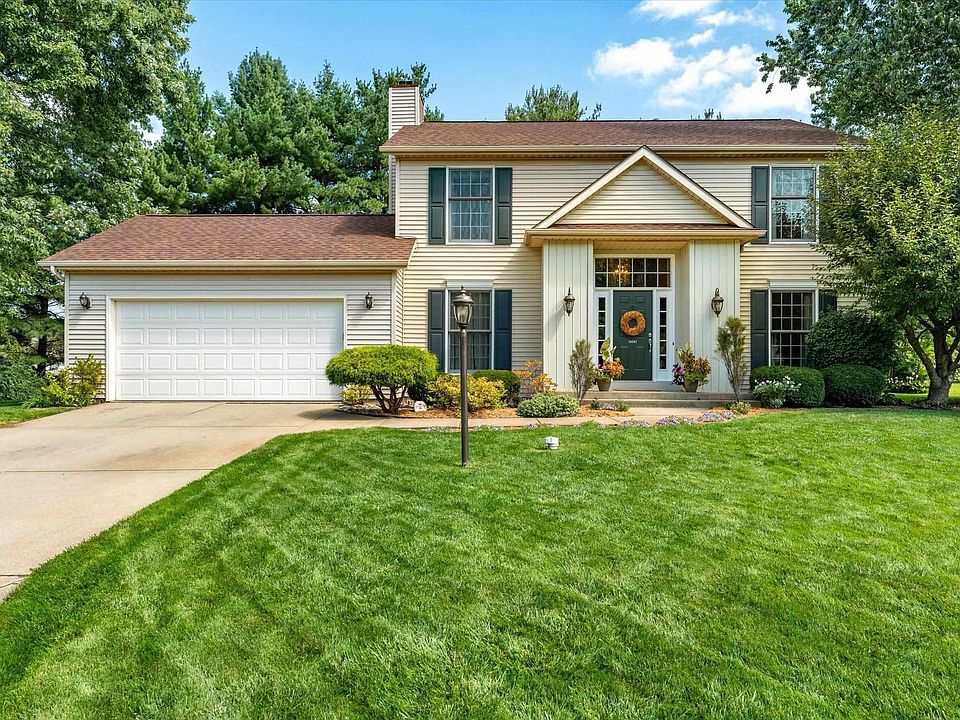 Lovingly cared for home in Granger's popular Fairfield Estates. Located in Penn Harris Madison's awarding winning Northpoint elementary, Discovery Middle School and Penn High School. Wonderful curb appeal with beautiful landscaping on a quiet cul-de-sac. Off the foyer is a nice sized living room/formal dining area. Adjacent to the dining room is an updated kitchen with stainless appliances, granite countertops and an eye catching tile backsplash. The informal dining area is light and bright and flows into a cozy family room with gas fireplace. Upstairs is a generous sized primary bedroom with walk-in closet and upgraded bathroom with amazing tiled shower. Two other nice sized bedrooms and a family bath with upgraded vanity and countertops round out the 2nd floor. The lower level has two finished rooms for relaxation and/or exercise/office space and unfinished area for adequate storage. Outside is a nice deck for summer grilling and socializing while enjoying a private, spacious well manicured yard. Roof- 2015, HVAC- 2017, Water heater- 2022, Septic-2009. Schedule your showing now before this one is gone.