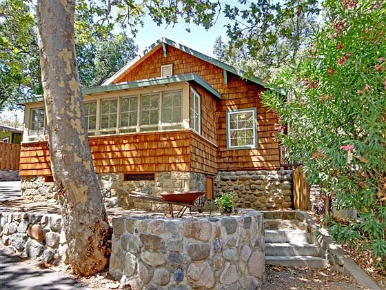 Beautifully updated country cottage in private setting near hiking and biking trails. Enclosed entrance patio is good for an office with lots of wooden windows and French doors leading to living room. Living room enjoys new carpeting, a coffered ceiling with recessed lights and a handsome rock fireplace with wooden mantle. Master bedroom features new carpeting, a vaulted ceiling with skylight, a walk-in closet with organizers and a full bathroom. Bathroom has laminate wood flooring and a luxu...