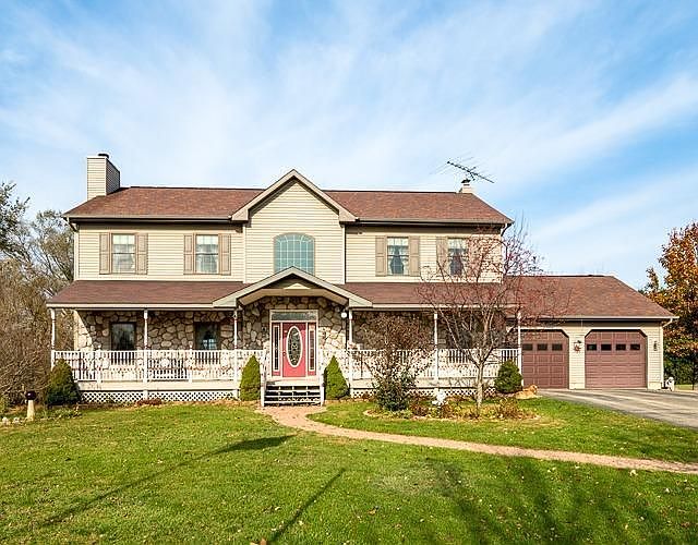 Enjoy the peace & tranquility of country living on 7 acres w/frontage on the River Raisin! Covered frt porch w/composite decking & stone siding welcomes you to this well maintained 2 story charmer. Inside, the 2 story foyer showcases the oak staircase & custom finished carpentry carried throughout. Combination kitchen w/tile splash, island, pantry & dbl ovens incl eating area w/door wall to rear deck & beautiful views. Lg formal dining & enviable living room w/custom marble & wood fireplace & 2nd door wall to rear deck. Upstairs offers versatility for library/office/family area with built ins & closet. Sizeable master ste with w/in closet, dbl. sinks & separate spa tub. Addtl 2nd lg bed with dbl closets & generous windows, full bath & 3rd bedroom up.Full fin w/out features 4th bed with egress, 2 more rms w/closets, full bath, laundry rm & storage/craft rm full of closets & cupboards for all your storage needs. Comfortable fam rm w/slider to custom patio & trail leading to river!
