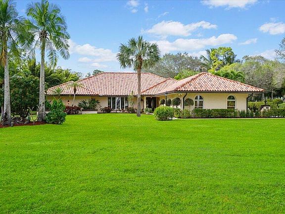 Welcome to this exceptional residence in Paddock Park 1 with No HOA on 1.12 acres and ample room for your Boat and RV. This 4-bed, 4-bath home features a newer custom barrel tile roof and 3829 sqft, a large primary suite and triple split bedroom floorplan. The recently refinished 36x18 heated pool/spa and spacious screened patio form an outdoor oasis complete with cabana bath. The kitchen includes new granite countertops, double ovens, wine fridge, walk-in pantry, custom double copper sink and hood, large island with 360' storage, a dine-in area framed by French doors overlooking the pool. Family room features vaulted oak beam ceiling and Fieldstone fireplace. Security cameras in use. Utility has granite counters, GE fridge/freezer, new Samsung washer/dryer. Newer hot water heaters. Accordion panel shutters, seamless gutters, water filtration, softener and interior is freshly painted. Walk or Golf Cart to A rated schools and minutes to WEF. Schedule a viewing today, your dream home awaits.