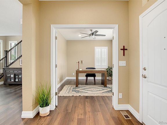 Welcome to this stunning two-story home located in the desirable subdivision of Heirloom in Parker. With 5 bedrooms and 4 bathrooms, this spacious residence offers a perfect blend of elegance & comfort. As you enter, you'll immediately be captivated by the open concept floor plan, which creates a seamless flow between the living spaces. The gourmet kitchen is a true chef's delight, featuring a large center island w/ seating, perfect for entertaining guests or enjoying casual meals with family. The high-end appliances and custom finishes make this kitchen a focal point of the home. One of the highlights of this home is the large pantry, offering ample storage space for all your culinary needs. Adjacent to the kitchen, you'll find a formal dining area, ideal for hosting dinner parties or enjoying special meals with loved ones. The main floor also boasts a study with French doors, providing a private space for work or relaxation. Upstairs, you'll discover the spacious primary suite, complete with a five-piece bath. This private sanctuary offers a tranquil escape from the stresses of daily life, with its luxurious features and ample space. Additionally, the finished basement includes a 5th bedroom & a 3/4 bath, providing extra flexibility for guests or as a private retreat. The backyard of this property has been thoughtfully designed and custom finished. It features a barbecue area with a built-in grill, perfect for outdoor gatherings and summer cookouts. The covered patio provides shade and a comfortable space to relax and unwind. Both the front and back yards are equipped with sprinkler systems, making it easy to maintain the lush greenery. The neighborhood itself offers a pool, providing a refreshing oasis during the warm summer months. Conveniently located near shopping, restaurants and hospitals. Offering easy access to E470 and I25, you are never far from anywhere you need to be.