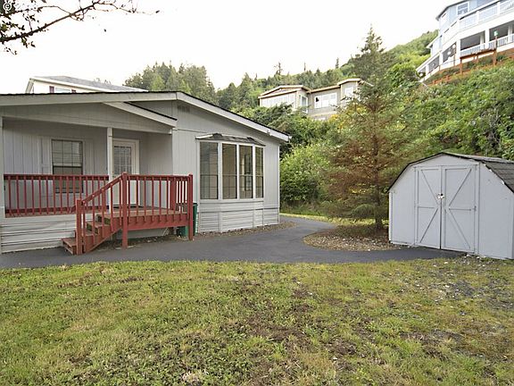 Great lot with peekaboo views of Bay and Ocean from existing one level, 2 bed, 2 bath 1989 manufactured home. Could have panoramic views...current zoning allows 45ft max structure height. Close to the Barview Jetty & Tillamook. Oversized lot for large boat, RV, etc. Enjoy crabbing, fishing, bird watching, seasonal steam train, beach, tide pools & more! Seller to carry contract with 20% down! Call for other financing options.