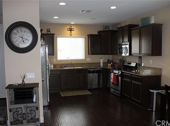 Your newly built Eastvale home awaits! This charming remodeled single story home boasts an inviting open floor plan with a large living room that opens up into your own gourmet kitchen with upgraded appliances. Some of the recent upgrades are granite counters in the kitchen, upgraded baseboards, upgraded fans/lighting and new laminate wood flooring throughout . Great size backyard with a large covered patio, complete with fans/lighting and wired for a Flat Screen TV, perfect for entertaining guests or relaxing in your own private oasis. This home is situated on a corner lot in the Sedonia Community of Eastvale, centrally located near the 15/71/60 freeways with an endless array of shopping and restaurants nearby. No expense has been spared. This is a must see!!!