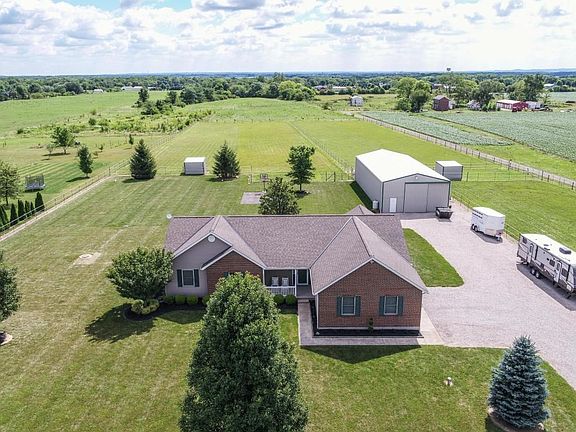 Impeccable home, wonderful country setting, 5 acres in Teays Valley Schls. Built in 2002, rare 4 bdrm ranch, popular open floor plan w/ beautiful views from all the right places, vaulted great rm w/fireplace, newer carpet, solid wood 6 panel doors, Pella windows. The perfect kitchen, new stainless steel appliances, new handscraped hardwood, planning desk, new high definition counters, large breakfast bar & dining room. Love mornings enjoying the property from the screened porch. Bedrooms are large, baths are updated, poured foundation & concrete capped crawl space. 30 X 72 barn w/5 stalls, hayloft & tack room, 4 fenced pastures, basketball court, fire pit, 2 lean-tos, 23 X 23 finished garage. Perfect place to entertain & make memories. Absolutely spotless! See A2A remarks for updates