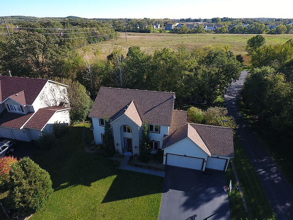 FABULOUS 2 story home on a gorgeous yard! .65 acres backs to wetland - PRIVACY to enjoy screen porch and hot tub, fire pit and playhouse. LL recently finished - family & play area, large Maple wet bar with wine/beer fridges and mini fridge, microwave and built in buffet. Two fireplaces, hardwood floors, main floor office with loads of built ins, den/formal dining. Open floor plan, oak & maple finishes. LL guest room/office and 3/4 bath. 3 bedrooms up all with w/in closets.