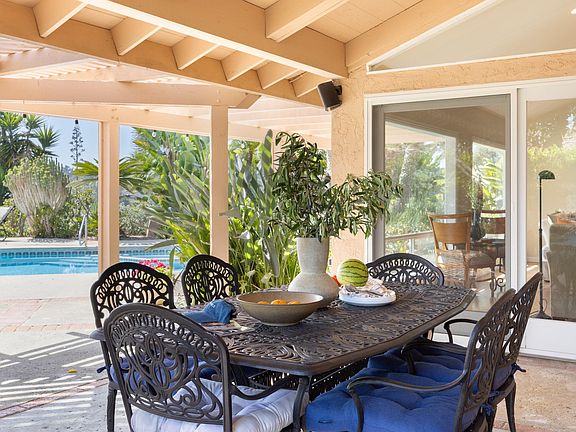 Welcome to Rancho Real, your vibrant retreat just 30 minutes north of San Diego! This beautiful three-bedroom oasis offers relaxation and fun with a stunning outdoor space surrounded by foliage, providing ultimate privacy and a lush atmosphere. Enjoy your private pool, hot tub, and sun loungers. The backyard transforms into a magical haven at sunset, with comfortable outdoor seating, multiple al fresco dining areas, and breathtaking views. Inside, natural light floods through large windows, illuminating a contemporary, upscale design. Relax in plush seating in the living room, gather around the dining table for ten, or pull up a stool at the fully equipped kitchen's island counter. A cozy secondary living area with another TV is perfect for movie nights or catching the game. The garage features a foosball table and beach gear for your shore adventures. The primary suite boasts a king bed, a patio, and a luxurious en-suite bathroom with a large tub and separate shower. The second bedroom offers two queen beds, while the third bedroom is ideal for kids or extra guests with two twin-over-full bunk beds. Guests have access to a 24/7 support team and a tech-enabled concierge to book services such as fridge stocking, mid-stay cleanings, and private chefs. Experience the best of Del Mar, La Jolla, and San Diego from your private paradise at Rancho Real. San Diego, known as "America's Finest City," offers beach hopping, Belmont Park's seafront roller coaster, and a bike ride to La Jolla for authentic Mexican fare. With SeaWorld, Legoland, and one of the best zoos in the country, it's playtime all the time in this sunny Southern California city. Local attractions include Windansea Beach, North Torrey Pines Golf Course, La Jolla Shores Park, Scripps Beach, Ellen Browning Scripps Park, The Cottage, La Jolla Sea Cave Kayaks, La Jolla Underwater Park, Catania, George's at the Cove, Caroline's Seaside Cafe, Wheat and Water, Masala Street, Herringbone Seafood, and Harry's Coffee Shop. Pets are not allowed in this home. If undisclosed pets are brought into the home, there is a fine of $500 per pet. This home does not offer pool heat. The AC cannot be set below 70 degrees. Quiet hours are between 10 PM and 7 AM. No videography for commercial purposes is permitted. The driveway can accommodate 4 cars, but the garage is unavailable. This is a smoke-free property. Violation of the no-smoking policy will result in a $300 smoking fee and liability for any fire or property damage costs. Occupancy limits and quiet hours (9 PM to 8 AM) are strictly enforced. No speakers or sound systems are provided. Violation of noise ordinances will be subject to fines up to $10,000 per violation. Events or parties are not allowed without prior written approval and an additional fee. Unauthorized parties or events will be shut down and a fine will be assessed. IDs will be requested for verification after booking. We report and prosecute all credit card fraud.