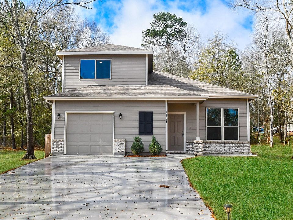 This Beautiful Family Home features 3 large bedrooms, 2 1/2 baths with 10" ceilings, open concept living/dining and kitchen area. LED lights throughout the home. Well appointed kitchen with 42" upper Maple cabinets with a large island. Granite counter tops, Stainless Steel appliance package, includes Side by Side Refrigerator, Washer and Dryer. Primary Bedroom on the 1st floor tucked away for privacy with huge walk in closet, En-suite bathroom, Two separate vanities each with a Sink, 5' shower. Two Bedrooms upstairs with a bathroom boasting tub/shower combination and shelving. Utility Room downstairs. Large fenced in yard with huge concrete patio. MUST BE SEEN! Country feel, yet a subdivision close to Conroe and Willis for shopping and restaurants, 15 minutes from Lake Conroe for boating and fishing.