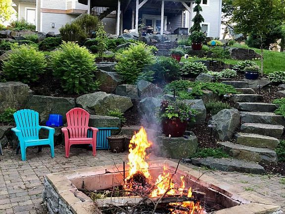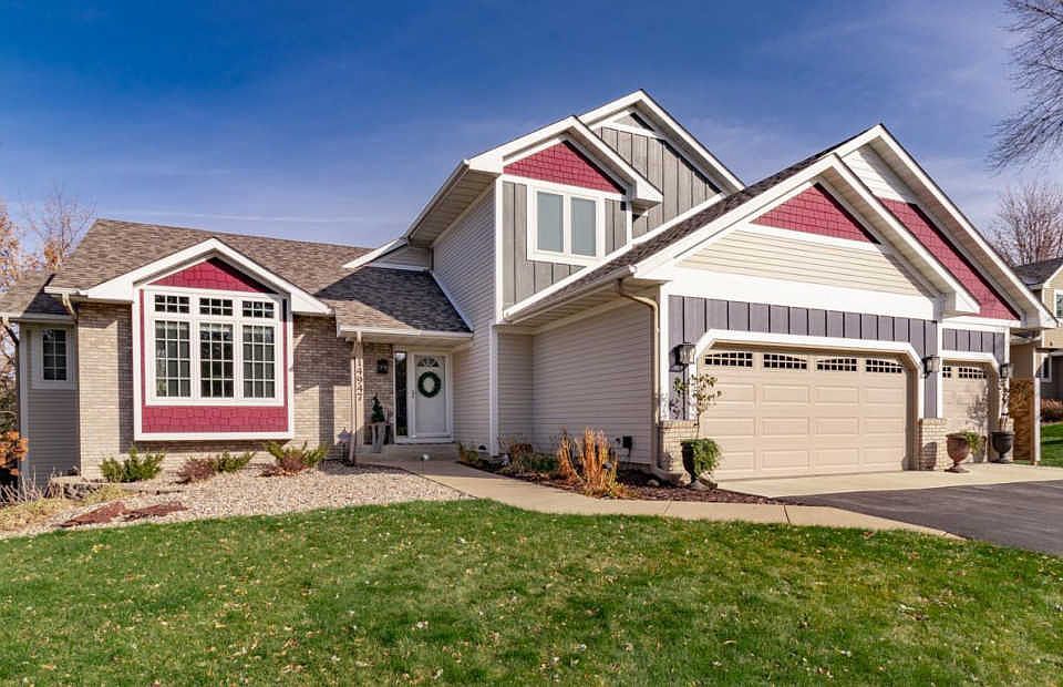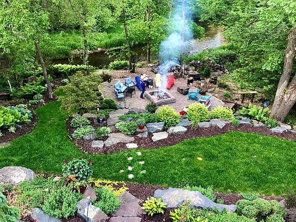 Perched atop a beautiful lot overlooking the Credit River. Updated Kitchen; Cherry Shaker style cabinets, Double Wall Ovens, Ceramic tile backsplash, huge Granite Island with built-in upscale GE monogram gas range with built-in Grill/Griddle and dropped down built-in Granite Table. In-island drawer microwave. GE Monogram Fridge with Cherry blend-in panels. Bosch dishwasher. New light fixtures thru-out home. Updated bathrooms. Luxuriously remodeled Ownerâs Suite Bathroom including Wall Mounted Electric Fireplace, Double Vanity, Elegant tile and lovely finishes. Heated Floors in both upstairs bathrooms, kitchen and lower level bedroom. Two additional gas fireplaces. New HVAC 2015. New Roof 2019. New Hardie Board Siding front to back 2015. Two new french doors lower level. New decking to be installed. Amazing grey Trap Boulders natural rock landscape leading to huge brick paver fire pit area. Prior Lake School District 719.