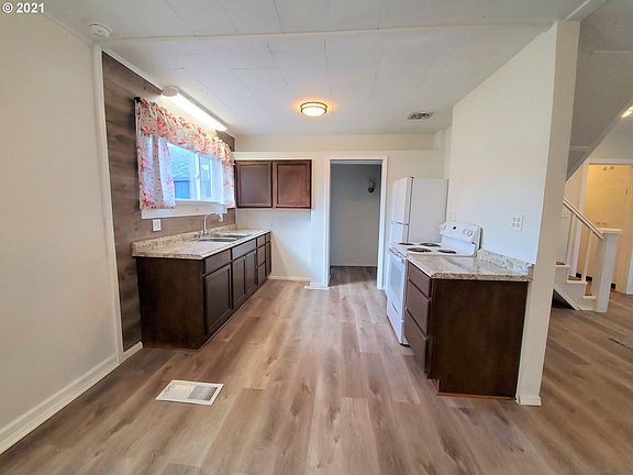 Cute, freshly updated 4 bedroom, 1 bath home in need of a new owner! New flooring throughout, new kitchen, fresh paint inside and out, updated bathroom and a lovely curved staircase. Outside has plenty of space, a storage shed & a little 'Guest House' for your fluffy friends!