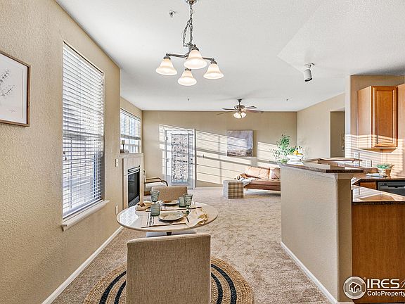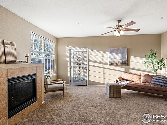 SELLER WILL PAY 6 MONTHS HOA DUES IF WE CLOSE BEFORE THE END OF THE YEAR! This charming 2bed/2bath condo is move in ready, featuring new carpet throughout, fresh paint & a cozy fireplace, perfect for snuggling up to on those Colorado winter nights. The ground floor location provides convenience, & the abundance of natural light creates a welcoming atmosphere. Inside, you'll find spacious walk in closets & a big pantry, offering ample storage for your needs. Plus, the bonus of a rare unit w/ a detached garage. Enjoy the fantastic community amenities, including a sparkling pool for hot summer days, workout facility, tennis courts & playground for outdoor fun. Don't miss this opportunity to make this condo your new home in the great community of Blue Sky.