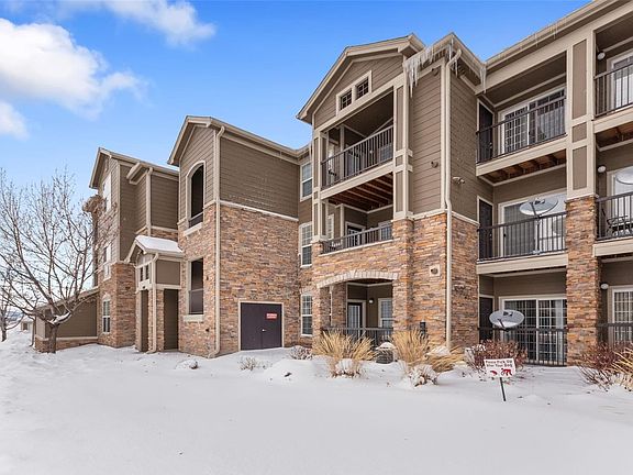 Welcome Home! Fantastic top floor condo in Blue Sky at Vista Ridge. Thoughtful design features an Open floor plan with plenty natural light and vaulted ceilings. Kitchen with granite counter tops, stainless steel appliances and breakfast nook. Oversized living room with cozy fireplace and private balcony. Generous sized master bedroom with large walk in closet and a second private balcony. Views of play area. Wonderful Resort style maintenance free amenities include a fitness center, swimming pool, hot tub, playgrounds, volleyball court, and club house. Blue sky is a wonderful golf course community nestled in a central location between Denver/Boulder and minutes from Top Golf, Premium Denver Outlets, entertainment and restaurants. This home would also make a great investment property.