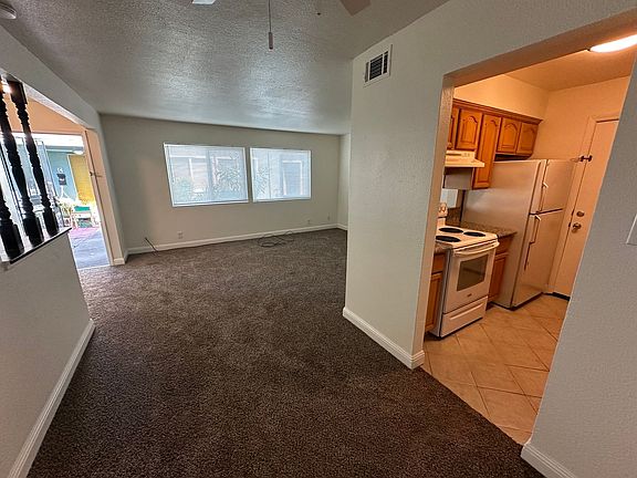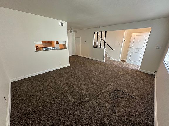 2 bed 1 bath apx 900 sq ft, two story condo. New paint and carpet throughout. Granite counters in the kitchen, with dishwasher. Central air conditioning and forced air heating. Attached carport with storage. Community pool and laundry. Large greenbelt. Close to freeway and shopping.