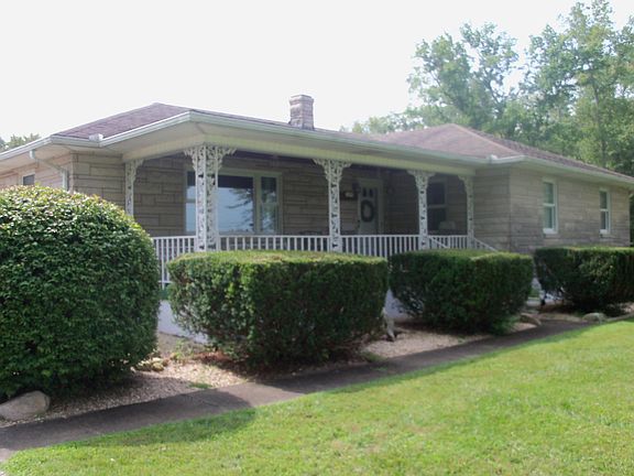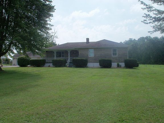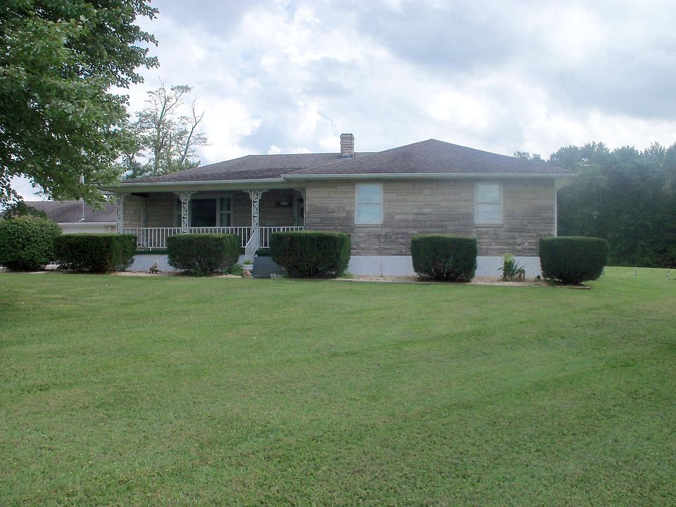 Beautiful setting with 5 acres of land with barn. This Bedford stone home has living room with gas fireplace; 3 bedrooms and 1.5 baths on main floor; dining area and eat in kitchen with bar and stainless steel appliances; utility up and down; basement has buck stove; bedroom, shower, room with freezer and storage, family room area; 3 car detached garage with storage area in back; separate garage building also included. Home has ADT security system that stays with home. Artisan well also on property.