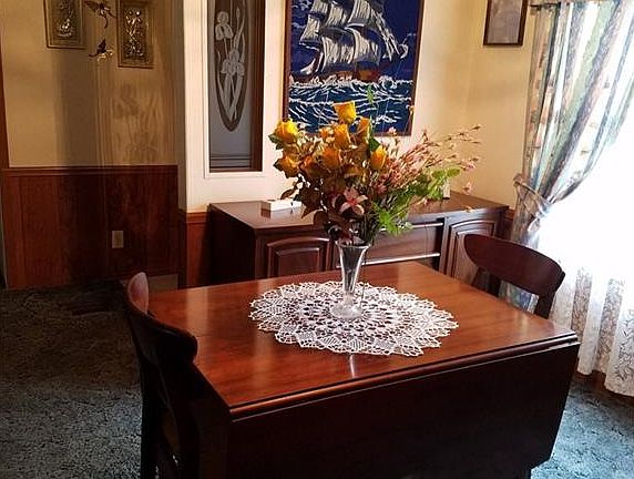 Country setting! Neat and tidy home with oversized wooded lot. Home has 3 bedrooms, two baths. There is a large eat in kitchen, dining area which opens to the living room.