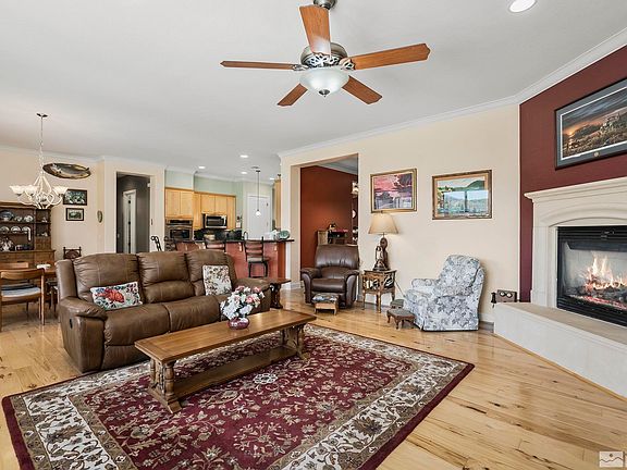 This is a gorgeous "Virginia" model with beautiful mountain views plus there are no neighbors on three sides. Some interior features include a new furnace, new water heater, new Low E pictures windows, fabulous real hickory hardwood floors, 800 sf of large custom tile floors placed on the diagonal. The kitchen is bright with lovely maple cabinets and slab granite counters. There is pendant and under counter lighting and roll out shelves. Crown molding is installed and enjoy multiple ceiling fans with, remote control. The family room is large and bright with a built in maple entertainment center. The front of he house has a H2O feature, covered front porch and a custom storm door. The back is beautiful with a covered patio, lots of flowers and mature landscaping, no road behind this house just a huge greenbelt. This is a beautiful home on a fabulous lot.