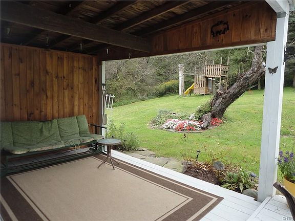 Great country setting for this completely remodeled farmhouse! Surrounded by woods, 2 story Barn & creek. Beautiful hardwood floors on first level & new laminate on second. Designer French country -style kitchen w/farmhouse sink & butcher block counters & NEW stainless steel appliances! (just installed!) First level laundry area, freshly painted & walk-in pantry. Remodeled full bath on first level with changing area. Great back yard w/children's play structure w/climbing wall & slide. Back deck is wired for hot tub on patio, plus electric dog fence. Pellet stove in dining room for cozy & warm winter evenings. Duet shades throughout are included. Plan now for enjoying quiet evenings on this great front porch!