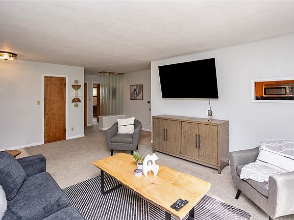 If you’ve been looking for a unique property with some land in the city-this is it! The main floor includes a large living room with big windows to view your private back yard with mature trees. Two bedrooms and one bathroom at the front of the house, with the largest having a large walk in closet. Kitchen has been updated with beautiful wood cabinets, granite countertops, and gas range. Eat in dining area and extra storage cabinets. All appliances included. At the back of the house is a 3rd bedroom with an exterior door, laundry room, storage and a 2nd bathroom w/ heated floors. Upstairs is a wonderful sunroom with separate HVAC and windows surround to keep an eye on the deer and city wildlife. Levels below the main floor include a half bath, workshop/storage area, a finished family room and large unfinished basement area for storage. 1.5 acres of land includes the fenced yard plus wooded area and creek beyond. Follow the path to the bike trail. Call an agent today to schedule a tour!