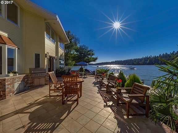 One of Oswego Lake's most unique Lake Front vantage points and neighborhood: Robinson Point; a gated cul-de-sac of only 4 homes. Located literally at the water's edge, inside this home you see only water in every direction. 180 degree views of the Lake and westerly exposure for afternoon sun and sunsets. The master suite has a window wall that is 38 feet long & massive walk-in closet, main floor guest suite, great room and new dock!