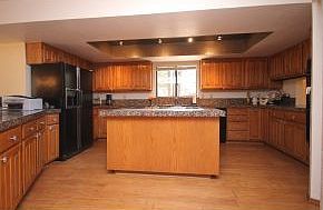 - Bar, Beamed Ceilings, Ceiling Fan(s), Central Vac-Plumbed, Eat-in Kitchen, Formal Dining, Granite Counters, Kitchen Island, Raised Ceilings 9+ft, Tile Counters, Wet Bar