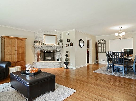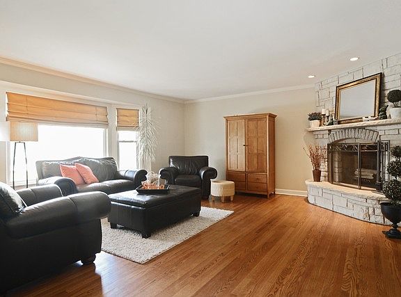 Delightful brick ranch having a 2 car attached garage on a huge totally private lot. Custom window treatments, hardwood flooring throughout. Kitchen features all stainless appliances, granite counters and great kitchen table space. Living room focal point is gorgeous stone fireplace, cove molding. Also, lots of open floor space for family and friends. Vaulted ceiling in family room with patio sliders out to huge yard. Master bedroom has beautifully done master bath. This home has a dry finished lower level, having newer drain tile, overhead sewer, sump and backup for safety. All that is needed here is move in, put your feet up and enjoy!