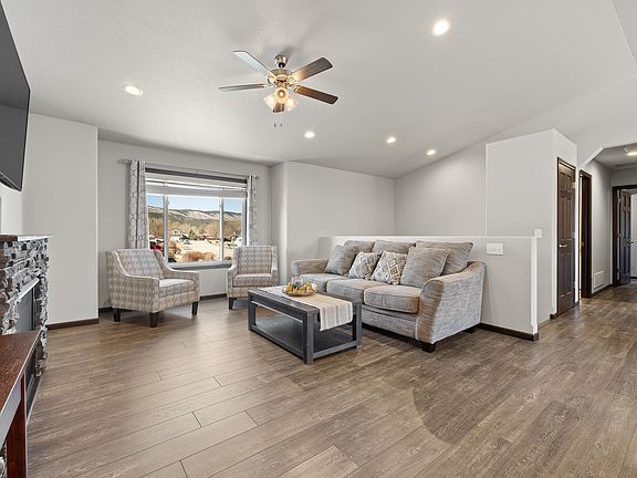 Beautifully crafted home by TNT Construction, offering a "better-than-new" experience in Sun Valley Estates! Fully finished and move-in ready, this property is situated on a desirable lot with no neighbors to the north or behind, providing extra privacy and space. An inviting open-concept main living area features LVT flooring, gas fireplace, and plenty of natural light. The upgraded kitchen is a dream with spacious center island, granite countertops, semi-custom cabinetry, corner pantry, and stainless steel appliances including gas range. The master suite is a true retreat with vaulted ceiling, walk-in closet, and luxurious tile shower with dual showerheads. The basement, finished after purchase to match the high-end main level finishes, offers LVT flooring in the family room, custom woodwork accents, and LED lighting for added character. A door from the family room leads to a small but versatile space—perfect for storage or a hobby room. Two bedrooms with egress windows, full bathroom, and generous laundry/utility room complete the lower level. Outside, enjoy the low-maintenance Redwood decking with metal railing, mature lawn, and firepit—perfect for enjoying warm summer nights! Additional high-quality TNT upgrades include Anderson windows, solid core doors, LP SmartSide siding with Diamond Kote finish, Redwood deck boards, and Class 4 impact-resistant 50-year shingles. This home is not included in the Sun Valley covenants according to First American Title records.