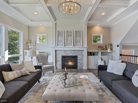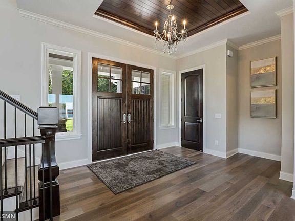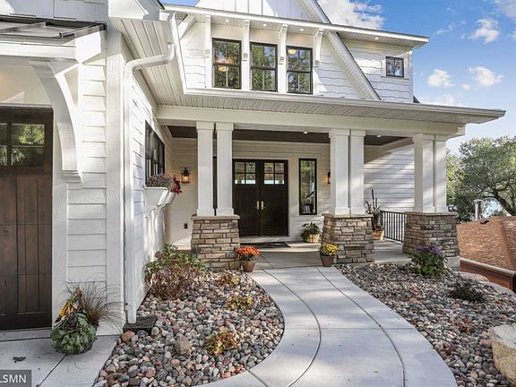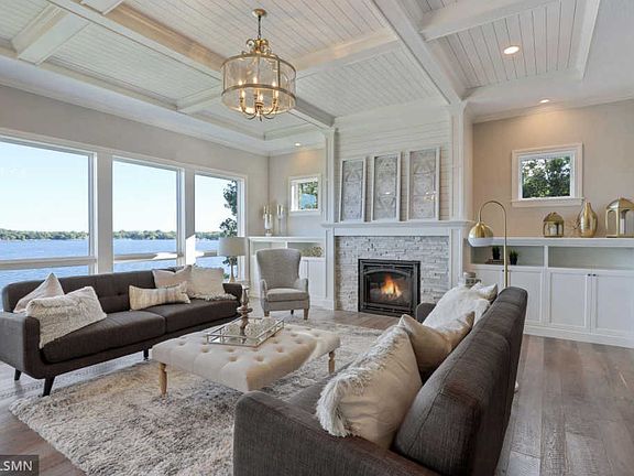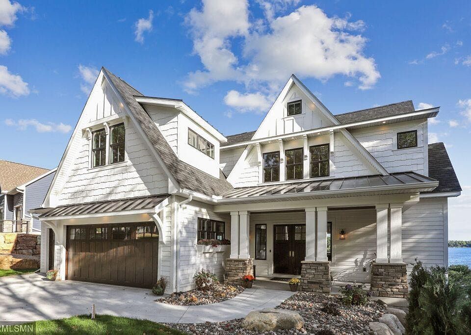 Stepping inside this modern farmhouse, your eyes are drawn to the floor-to-ceiling Marvin Integrity windows that fill the back of the home & frame the spectacular views of Prior Lake. This home boasts 10-foot coffered ceilings, stunning light fixtures, enameled shiplap in dining room & stained shiplap in stairway & entry, a gourmet kitchen boasts Thermador commercial grade appliances & butler's pantry for extra prep space. Quality craftsmanship shines in this home with an 11-foot-wide stairwell, custom 8-inch newel posts w/matching cabinet corner posts, & knotty alder doors. A relaxing rooftop deck situated over the four-season porch is accessible from both the master & loft. The master suite is a private sanctuary with its own incredible lake view, a barrel-vaulted ceiling, a gorgeous freestanding tub & more. Friends and family alike will enjoy the entertainment space and wet bar. No lake home is complete without a boathouse-this one even has its own rooftop deck