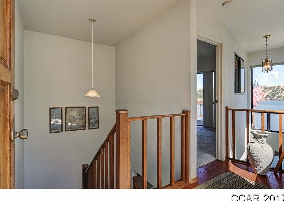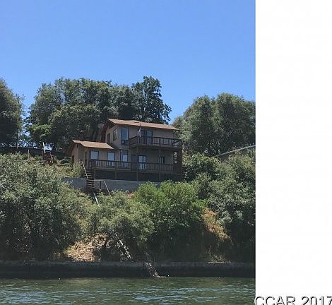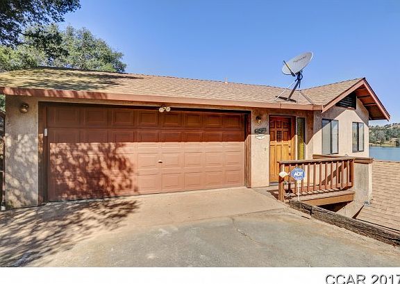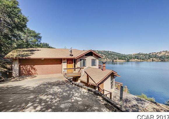 Lakefront living in this modest +/- 1296 sqft home with gorgeous lake views and local splendor. This is a two bedroom two bath home has lake access and sits on approx .32 of an acre. It has indoor laundry, decks on both levels and two-2 car garages. You can live her full time or as your vacation getaway. Has a dock permit but there is no dock in the water at this time, This is located at the South Shore of Lake Tulloch near the recreation area and dam.