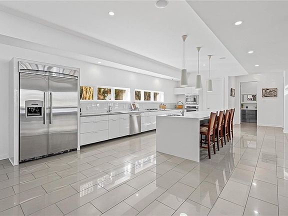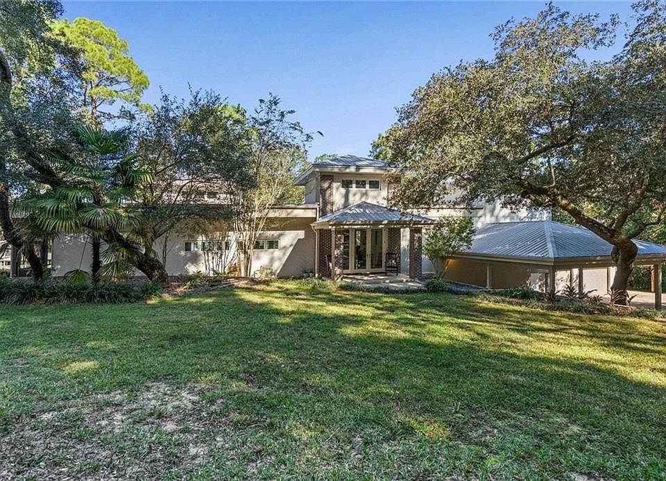 Experience refined waterfront living on this 2.2-acre estate with 186 feet of deep-water frontage along beautiful Fish River. This 5,200 sq. ft. concrete constructed home with a metal roof blends modern design with elegant Asian-inspired details and offers the perfect balance of sophistication and natural beauty.Interior Highlights:Step inside to an open, light-filled floor plan surrounded by expansive windows that showcase panoramic water views. The Thermador-equipped chef's kitchen features premium appliances, sleek cabinetry, and clean, contemporary lines. With three laundry rooms, generous living areas, and thoughtful design throughout, the home delivers both comfort and functionality in every detail.Exterior Features:Enjoy seamless indoor-outdoor living with a screened outdoor kitchen featuring a built-in grill, dishwasher, sink, and refrigerator ideal for entertaining by the river. The property includes a sprinkler system, heated and cooled metal building with a car lift, and a second metal building with RV storage. Surrounded by mature trees and natural landscape, this estate offers privacy, tranquility, and a true connection to the water. Buyer to verify all information during due diligence.