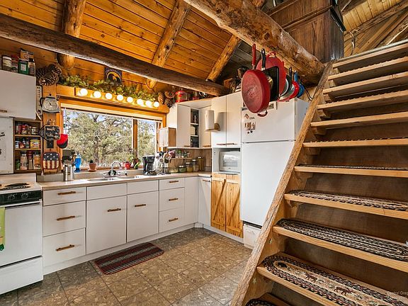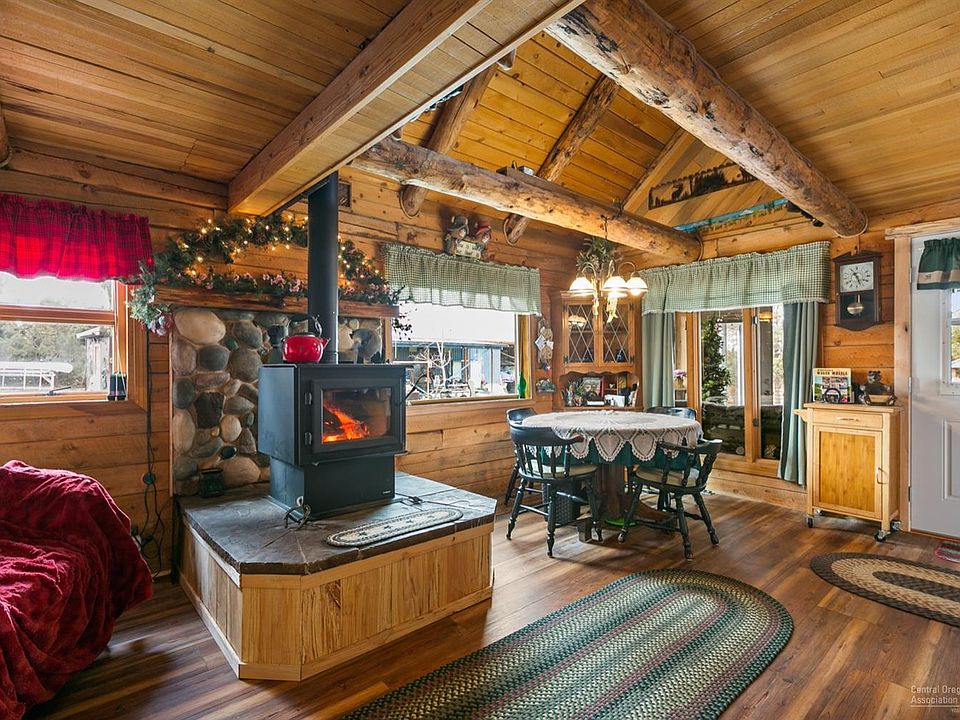 Charming log home situated on a 3.72 acre fully fenced corner lot. Home has been well cared for with new vinyl wood plank floors, new wood stove, and new interior wood throughout the home. New railing on large covered deck and recently enclosed for wind protection, plus large deck off upstairs loft with new railing and staircase. Enjoy panoramic Cascade Mountain views from upper deck! Beautifully landscaped yard with underground sprinklers, large 24x76 shop with two overhead doors, plus a 12x40 lean-to, and storage building with new flooring. Paved driveway. 10x10 Garden shed. Horse corral and single stall with hay storage. Bring your animals and enjoy quiet country living!