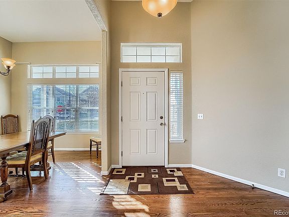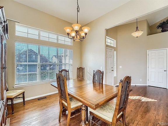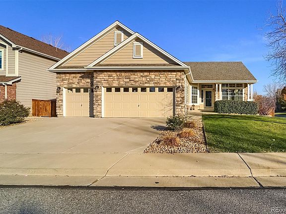 Welcome to this amazing ranch style home with 3 bedrooms, 2 full baths, 3 car garage & full basement. This home has so much to offer inside and out! Start with the corner lot, 3 car garage, large patio for entertaining or just hanging out and fully landscaped with sprinkler system. Inside you are greeted with an open concept, hardwood floors & vaulted ceilings! As you make your way to the kitchen you first go through the dining room. Elevated ceilings and plenty of windows make this a favorite room for guests. You enter the kitchen and are greeted by slab granite counter tops, tile back splash, hardwood flooring, 42" maple cabinets, stainless steel appliances and an open view of the eat-in kitchen and large family room. The family room features a gas fireplace and vaulted ceilings. Down the hall you will find all 3 bedrooms, the laundry room and bathrooms. The primary bedroom is large and features a wall of windows, vaulted ceilings, private 5 piece bath with 2 separate vanities, tub, shower, private toilet room and walk-in closet. The community pool is just a few blocks away, there are several parks, miles of walking trails and the Elementary School is in the neighborhood. The Middle School is just down the road, the Orchard mall just a couple miles away & the Denver Premium Outlets are just a couple miles away as well. This neighborhood is NOT in a Metro District, look at the taxes, you are saving money by living here. This home has been filled with love, wonderful memories, friends and family and we hope you will feel it to when you are here.