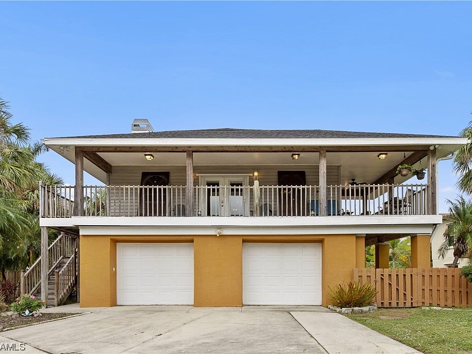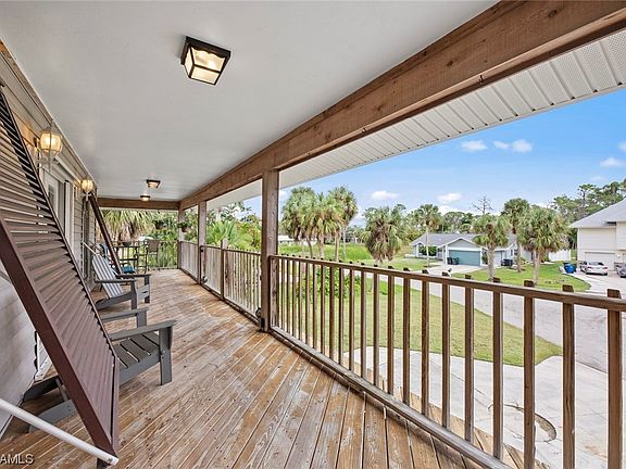 A serene setting located on a private cul-de-sac off the historic McGregor Corridor this charming old Florida-style home exudes tranquility and offers picturesque views of Clear Lake, minutes away from Fort Myers Beach and Sanibel Captiva islands. 3 bedrooms and 2 bathrooms, this residence features a large wrap-around porch that allows you to immerse yourself in the beauty of the lush grounds. The screened lanai provides an ideal spot to witness breathtaking sunsets, while the oversized garage offers a workbench and hobby space. Meticulously maintained with various updates including a new roof, soffits, fascia, flooring, and plumbing. The open floor plan, complemented by vaulted ceilings, a gas fireplace, and panoramic views of nature, creates a spacious and inviting ambiance. Additionally, the home presents an enticing opportunity for guests with its newly renovated 754 square foot 1-bedroom, 1-bathroom lower-level apartment (included in living SF). This private space includes a separate entrance and is fully equipped with all the amenities one would expect, offering a cozy retreat for visitors. Multiple outdoor living spaces, this property truly embodies sanctuary-like qualities, providing a rare find for those seeking both comfort and natural beauty in a home.
