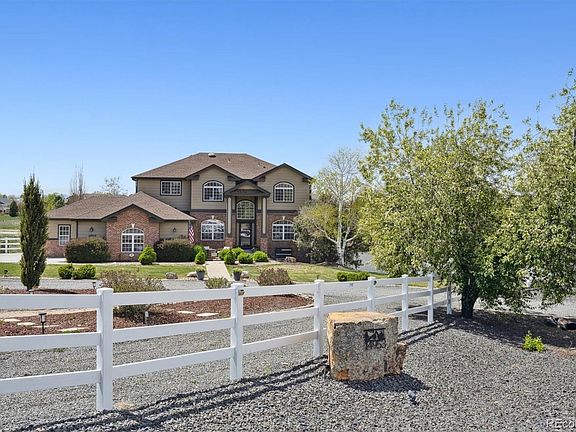 ACREAGE PROPERTY WITH GEOTHERMAL ENERGY! Welcome home to this stunning residence situated on 1.9 acres in beautiful Todd Creek Farms. This 5 BED, 4 BATH home spans 4,774 square feet and offers an inviting blend of modern updates and timeless comfort. The kitchen has been completely updated with custom two-toned cabinetry, quartz counters, large farmhouse sink, and top of the line appliances. The connected great room boasts a stone fireplace with built-ins, vaulted ceilings and tons of natural light from the floor to ceiling windows. Upstairs you will find a spacious, light & airy primary bedroom, updated ensuite bathroom with a large walk-in shower, and walk-in closet. The finished walk-out basement features a full kitchen and family room, perfect for entertaining a large crowd, the 5th bedroom and a home gym that can also double as a 6th bedroom. Continue out to the landscaped backyard to enjoy Colorado's year round beauty from your outdoor deck, patio, or by the outdoor fireplace. This home is ENERGY EFFICIENT with a geothermal energy system that cools and heats the home. Additional highlights include a 1,904 square foot workshop, laundry/mudroom off the attached garage, spacious home office on the main level, and renovated bathrooms on the main & upper levels. This home has so much to offer and more...schedule your showing today!