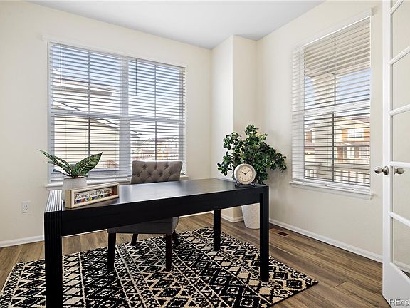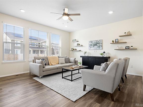 Upon entering you will notice the home office that is light and bright with two windows and French doors, half bath, and spacious open concept living area consisting of living room, kitchen and dining area. Upstairs you first find the generous primary suite with 5 piece bath the walk in closet, down the hall you will find two more bedrooms adjoined by a full bath, a 4th bedroom with ensuite bath and finally a laundry room. The finished basement has a rec room, 5th conforming bedroom and 3/4 bath. In the warmer months you will enjoy the large back yard. Sierra Ridge has playgrounds and a pool that is included in the HOA fees.
