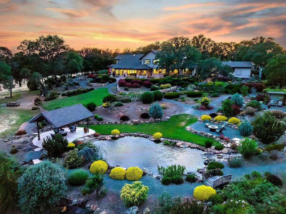 Custom home w/PANAROMIC views of the Sierra's, West to Mt. Diablo & Coastal Range. Mother Nature out did herself on this remarkable 37.56+/- acres ideal for events, vineyard or horse facility. Perfectly situated between Auburn & Grass Valley/Nevada City. Home features 5,326+/- sq ft of MAIN FLOOR LIVING which includes the bright great room, a large kitchen, sunroom, laundry, guest suite with private bathroom, separate wing for the spacious master with private office/sitting room & bonus space ideal for working out/nursery. Upstairs is a game/family room & 4 large bedrooms and 2 full baths. 5 acres around the home are fenced and landscaped boasting a spectacular crystal clear POND & circulating stream system, pergola, built in fire-pit, raised garden beds & expansive patio. Detached 3 car garage with breezeway to home. Entire property is fenced and cross fenced - livestock ready. PRIVATE without a neighbor in site. Winding drive with gated entry. Craftsmanship, detail & care were taken to create this masterpiece!