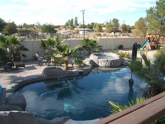 Entertainers Delight! Shows like a model, home has been Redecorated & Upgraded. New Tile Flooring. Kitchen cabinets with new doors & drawers, granite Counters, wine rack, Lighting, Formal Living (or game room) Double French Doors make Formal Dining into an Office/Den, Grand Family Room, Heart-Warming Fireplace, Master Suite with luxury Bath, two Vanities & remodeled tile shower, 2 secondary bedrooms are spacious, Hall Bath has SPA-like Vanity new Tub/Shower, etc., Laundry Room with tons of storage & granite folding-area, Half Bath, Bonus Room (could be Hobby Room/Play Room), .87 Acre lot all fenced & auto gate with Beautiful Rock scape Yard has many Shrubs, Trees, Roses, & Fruit Trees, Swimmer's Pool with Waterfall & Water Slide, Spa (Pebble Finish) Lots of outdoor lighting, Covered Patio & Wooden Deck for Large Gatherings. Pool/Spa were installed one year ago. This is a must see! Plenty of space for Horses in lower rear yard. PRICE REDUCED BY $5000.TO NEW LOW PRICE OF $369,900.