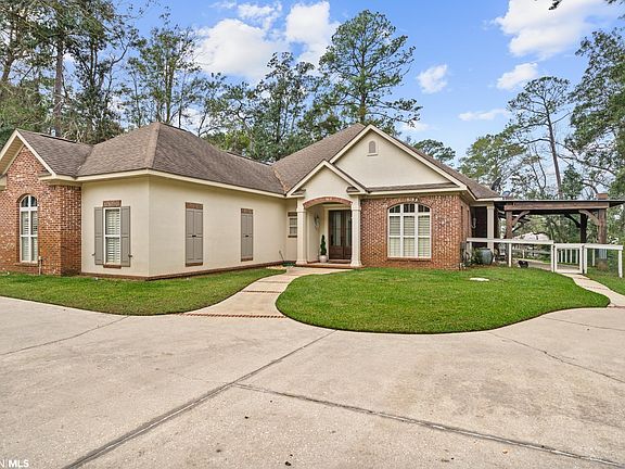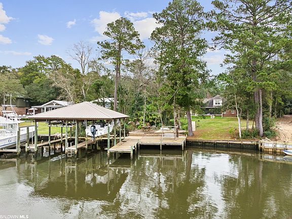 Riverfront Paradise with approximately 5 acres and 75’ on Fish River. Custom built with 10’ ceilings and open floor plan with arched openings. Beautiful views of Fish River and approximately 325 sq ft of screened porch. Bulk headed and huge pier and has 2 30’ boat slips with 6,000 lb. lifts. Winding concrete driveway and open to a pond with fountain. Excellent home for entertaining inside and out and propane generator recently installed. 2 parcels; PPIN 214344, approximately .6 acres and PPIN 073240 approximately 4.3 acres. All Information provided is deemed reliable but not guaranteed. Buyer or buyer’s agent to verify all information.