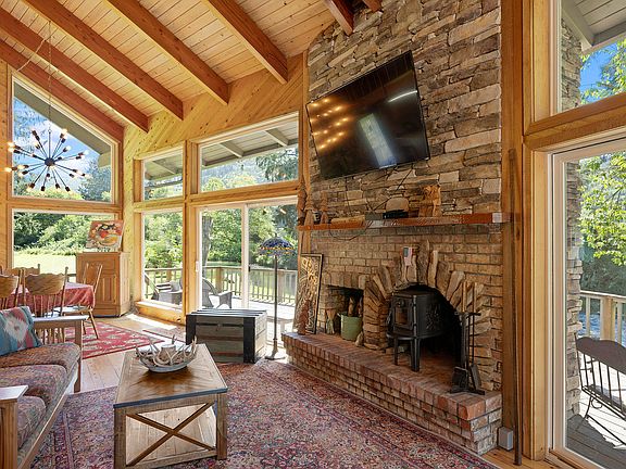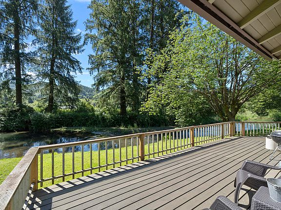 Imagine owning your very own 1.73 acres of fisherman's paradise! Nested on the bank of the Miami Foley River, this lodge-style home is a fantasy come true for anyone that has dreamed of having a tastefully landscaped property with the river right outside the door. Decks wrap around 3 sides of this 3 bedroom/2 bath home featuring a large shop, multiple outbuildings, and a finished man-cave off the garage. Adorned with uniquely stunning stained-glass doors, hardwood floors with walnut plugs and a large modern/rustic fireplace, this jaw-dropping home is sure to enchant you. Located close to the bay and a short drive to the ocean, you'll be able enjoy an abundance of wild-life, enjoy the coho run or outdoor sports. Once you're there, you'll never want to leave!