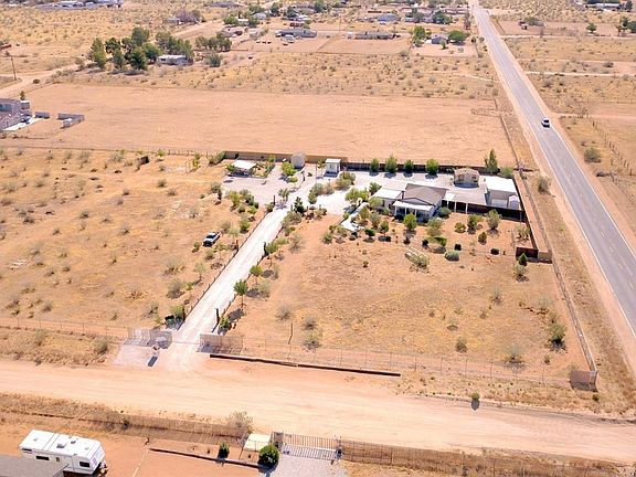 You can own your own Ranch on 5 acres. You will be pleasantly surprised in your own private oasis that has a ton to offer!! Electric gate and lighted driveway leads to this very charming and well kept home. Good sized living room with a pellet stove and 2 bathroom. Plus a very custom/adorable/rustic kitchen with plenty of storage including a pantry. Ceiling fans thru out. 2 Patios, 4 storage sheds, 4 animal corrals with electric and water and 2 of them have shelters. 2 RV pads that have water and electric. Plus plenty of trees that all have water to them. Heater and AC are ductless. Separate room for washer, dryer extra refrigerator and freezer. Privacy fencing around the house. You will not want to miss out on this unique home.