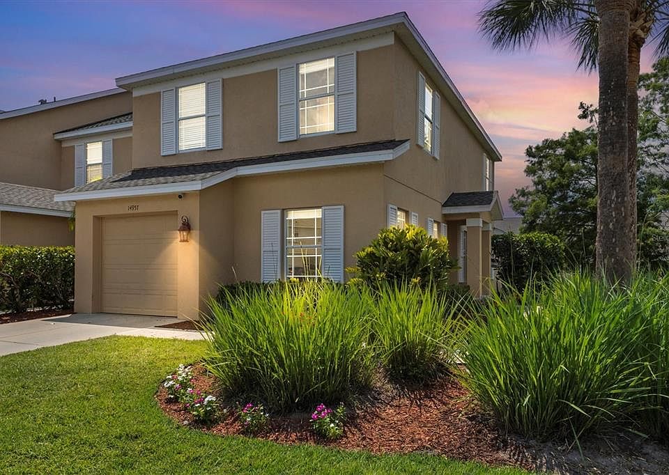 Enjoy maintenance-free living in this gorgeous, fully remodeled end-unit townhome with an attached garage! Offering beautiful pond views from your screened lanai and conveniently located near the community pool, this home combines luxury and convenience. The low HOA fee includes water, internet, and cable! From the moment you step inside, you'll feel like you're on an episode of HGTV. The kitchen has been opened up to feature a stunning breakfast bar and island, seamlessly separating the dining room and creating an open feel on the first floor. Complete with porcelain tile, quartz countertops, new modern cabinets, shiplap accents and stainless steel appliances, this kitchen is a chef's dream. All of the bathrooms have been updated to a high standard, with the master bathroom standing out as a true retreat. It features a new shower with inlaid tile, a dual sink vanity, and a spacious linen area. The master bedroom is generously sized, offering plenty of natural light, views of the stunning pond and a large walk-in closet. The entire unit boasts new laminate flooring, fresh paint, modern window treatments, updated lighting, and new appliances, making this home move-in ready and sure to impress any buyer. The roof and AC were replaced in 2022! Greenbrook Walk is located in Lakewood Ranch, one of the top-selling communities in the country. Enjoy "A" rated schools, parks, playgrounds, over 150 miles of trails, and various community clubs. The community is conveniently close to shopping, I-75, and just 30 minutes from downtown Sarasota and world-famous beaches. Don't miss the opportunity to make this spectacular home yours and start enjoying the best of Florida living today! **seller is offering special financing incentives**