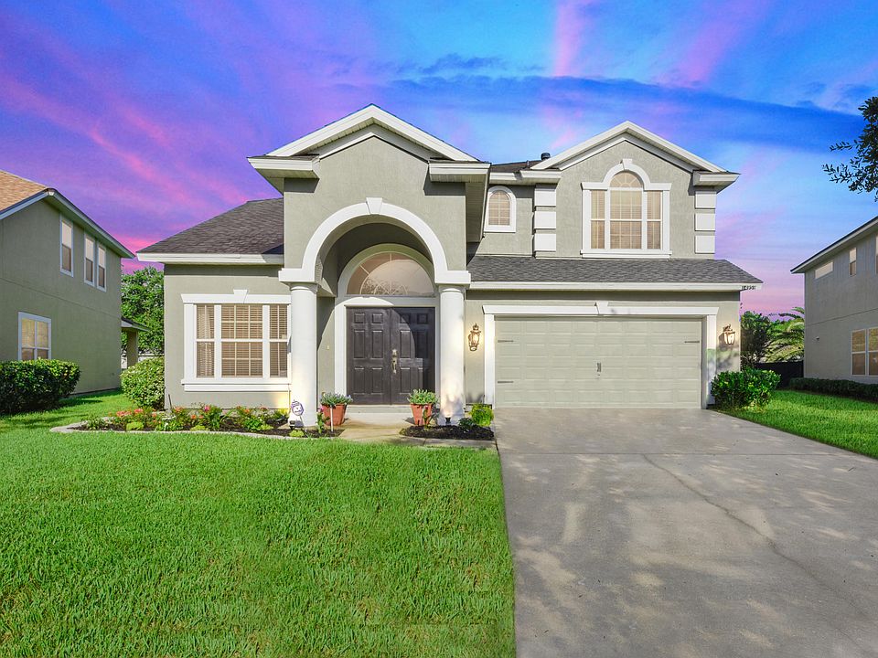 WATER View + LOFT Home on a HUGE Lot! MUST see ASAP!! 3 Full Bathrooms, BRAND NEW Carpet, NEW Exterior Paint as well as NEW Designer Interior Paint! STAINLESS SLATE Appliances - GAS Stove! AND Fridge INCLUDED! The Shiplap Breakfast Nook, 42'' Cabinets w Upgraded Hardware Give This Home a stylish Farmhouse Feel! PRICED TO SELL! Private Master Suite. Spa Like Master Bath w/Glass shower. Vaulted ceiling in Formal Living & Dining area! Chandelier in Formal Dining Room STAYS! NEW Engineered Wood flooring on stairs and throughout first floor! Enjoy the WATER VIEW from the Extended, Tile lanai! MUST SEE TODAY! Resort style amenities include-Fitness Center, Pool w. Slide, tennis courts, playground & MORE! Convenient location near popular Retail & Dining & NEW Durbin Park Shopping Complex