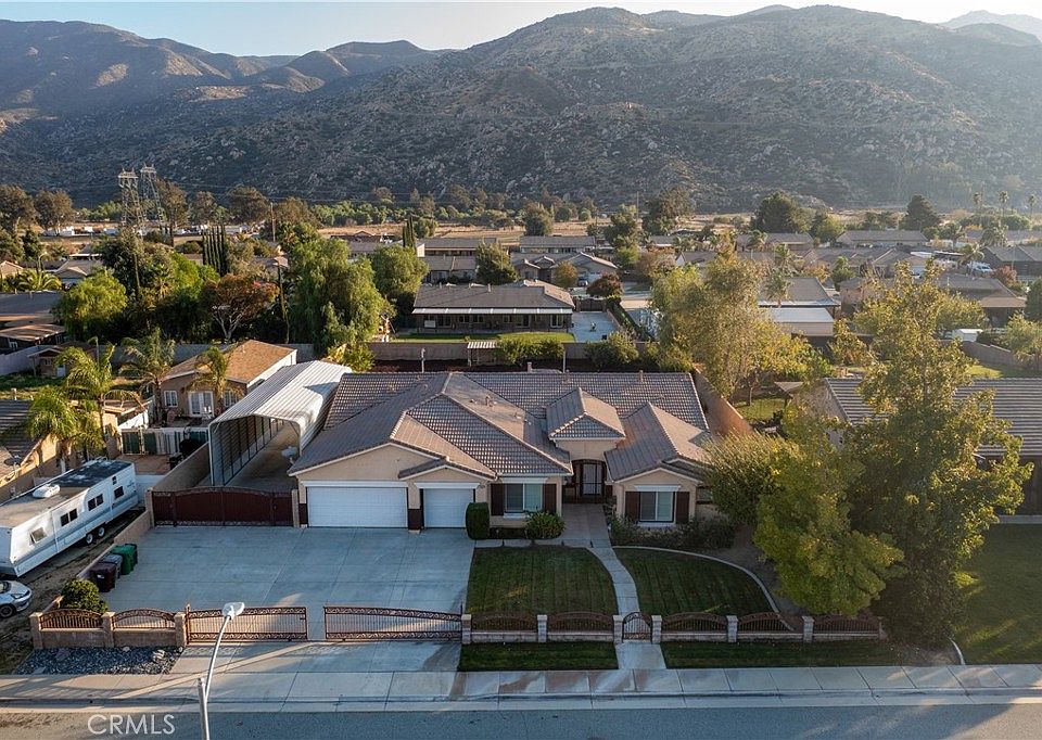 Come see all that this home has to offer. It has Beautiful Mountain views regardless of where you look. Find serenity in this spacious 0.47 acre home equipped with a spacious front and backyard.The home is 3,032 square feet, it has 4 bedrooms PLUS an office. Have trouble getting everyone ready in the morning? Not anymore, this home has 3 bathrooms, among them one jack and jill that includes a toilet sink combo, bath tub and one more toilet sink combo. The home has RV parking, with all the hook ups, and a Rv port ready to home and shade all your Toys. It has a Spacious blank canvas backyard with lots of potential and room for many possibilities with RA zoning that allows small scale agriculture and animals. Come see yourself entertaining friends and family in this open floor plan with cozy fire place and spacious remodeled kitchen. "NO HOA", a Four car garage fully equipped with spacious cabinetry. Located minutes away from Casino Morongo and Dessert Hills premium outlets.