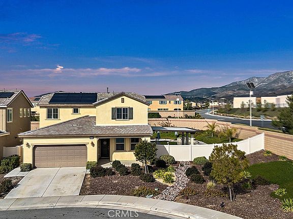 Sundance North Community Pool Home Stunner. Fabulous two story home located on almost quarter acre at the end of a cul de sac. Upon entry you'll appreciate the front sitting room/office, open concept main floor, gorgeous great room, open kitchen, lots of windows that bring in natural light. Custom back yard that's perfectly private and large which is great for relaxing and entertaining friends and family. This Backyard has it all, grass area, stamped concrete, newer salt water pool and spa, gas fire pit, and aluma wood patio cover. The area features beautiful mountain views of San Gorgonio, tons of community events. Just Walking distance to San Gorgonio middle and Sundance elementary, also the Sundance Community includes many parks, recreational areas, pools, and playgrounds. Don't let this rare opportunity slip away.